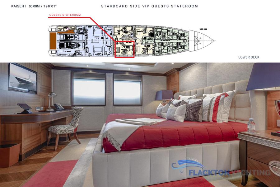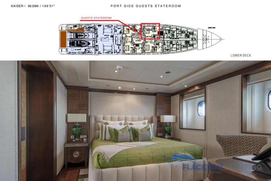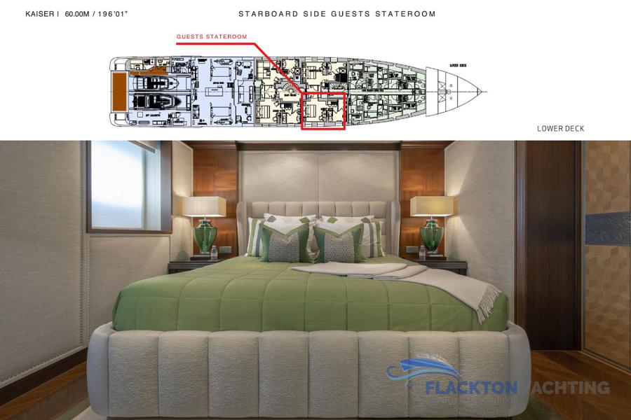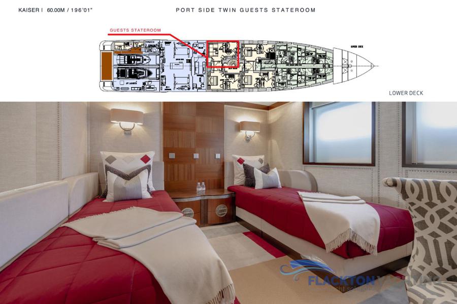 LOWER DECK: Two double staterooms below aft Two twin staterooms below