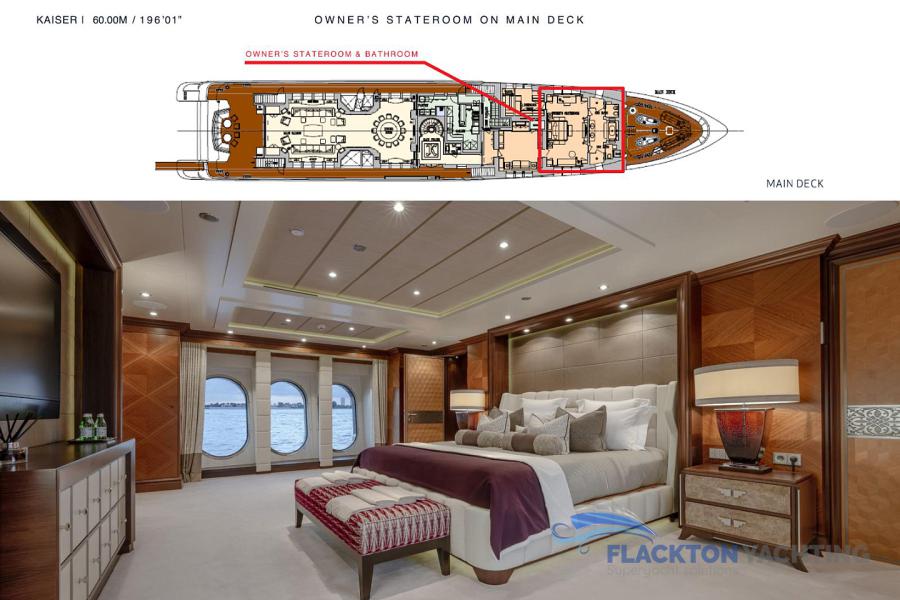 Aft MAIN DECK: One master suite full beam on main deck forward