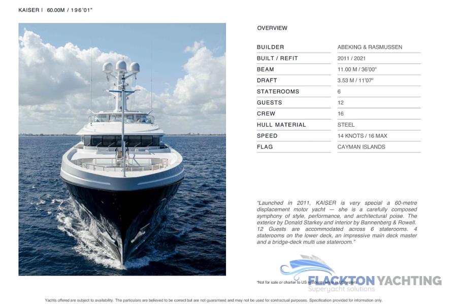 The asking price for M/Y KAISER 60M (196’) Abeking & Rasmussen 2011/2021 has been significantly reduced recently.
