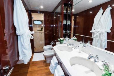 She can accommodate up to 12 guests in five luxurious cabins , one Master king bed, 1 Vip with Queen bed, 1 Double, 2 Twin cabins with 2 twin beds and 1 Pullman berth each