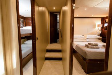 The full beam master suite is the epitome of elegance and includes a large double-sized bed and walk-in wardrobe. The VIP cabin also has a walk-in closet and a king-size bed. Furthermore, one double and one twin cabin (converted into a double) complete her spacious accommodation.