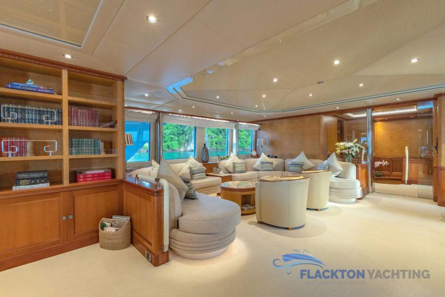 AZUL V has been fitted out with the latest navigation and electronic equipment. Underway stabilisers keep her comfortable no matter the cruising conditions. Powered by two Deutz 620 V-12 2285hp engines, motor yacht AZUL V cruises at 13 knots and can reach top speeds of 16 knots.