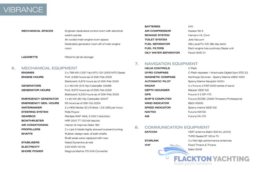 Часы генератора - Port: 8,673/h Starboard: 9,253/h Emerg. 1 X 60KW Cat 3354T